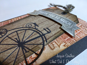 I love the red bicycle stamped on the wood veneer, but without a modern bicycle image, it took a bit of pondering to come up with my card.