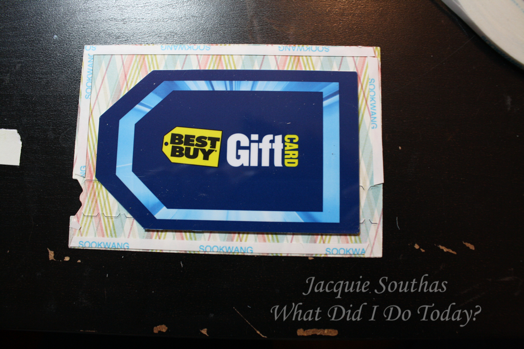 Dear daughter gets an iTunes gift card - it is a little easier to see in this photo how I ran the Scor-Tape.