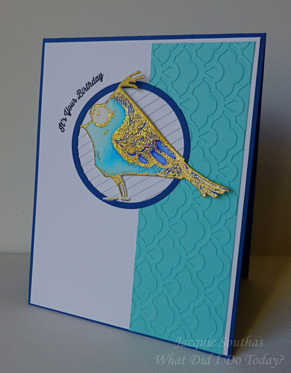 The sentiment is created by pairing a Simon Says Stamp die cut with an embossed sentiment banner. The shimmer card stock works well all the bling.