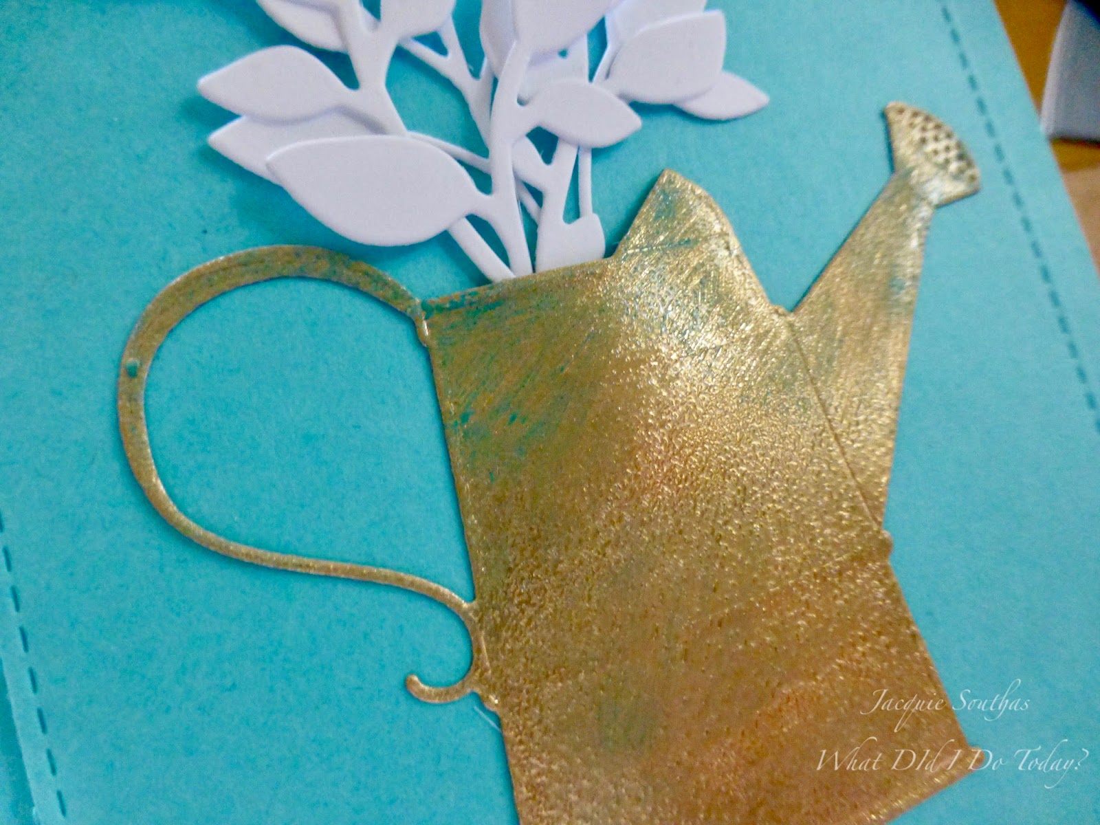 The MFT Friend Request and Smart Phone dies provided the other design elements needed for this card. The squiggly hello is stamped and embossed and then the panel was inked with Twisted Citron Distress Ink. The phone was assembled and adhered to a Smoky Shadow card base below the heat embossed Friend Request sentiment.