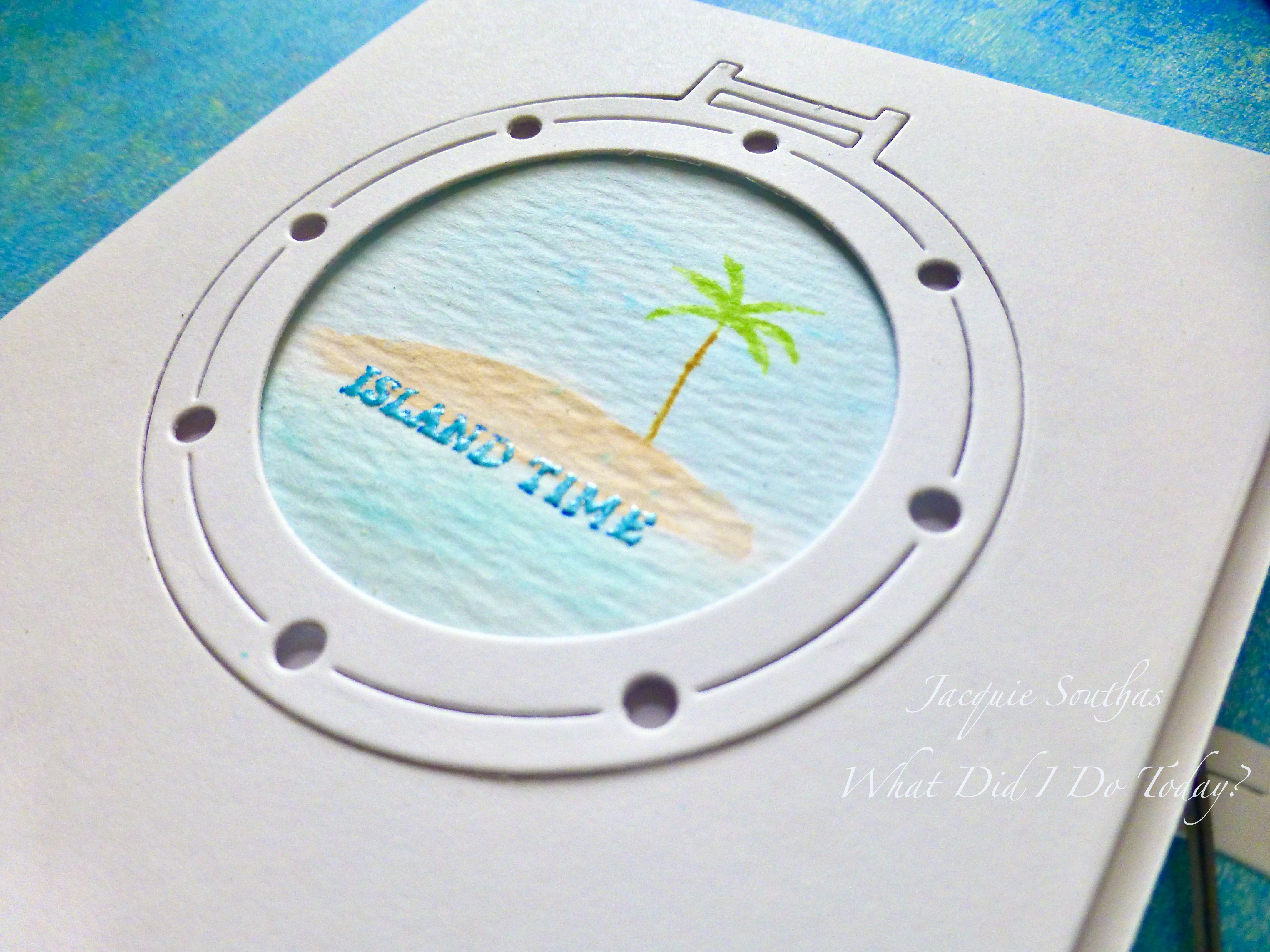 After the pool paper was adhered and the Imaginisce Party Me Hearty sentiment heat embossed on the panel, I was ready to layer on the die cuts except I didn't like what felt like an unfinished pool edge.